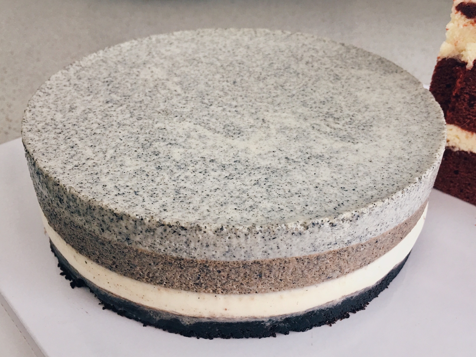 基础蛋糕基本表面绝大部分变色就可以了