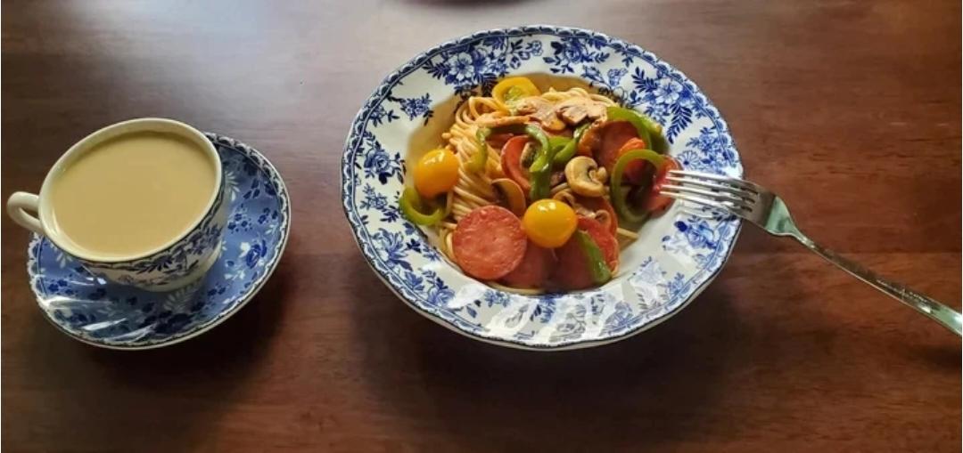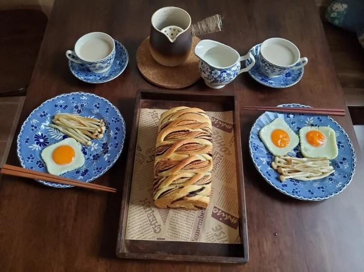 一个乱糟糟的书房 + 一个整洁的厨房。