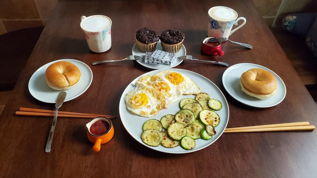 一个乱糟糟的书房 + 一个整洁的厨房。