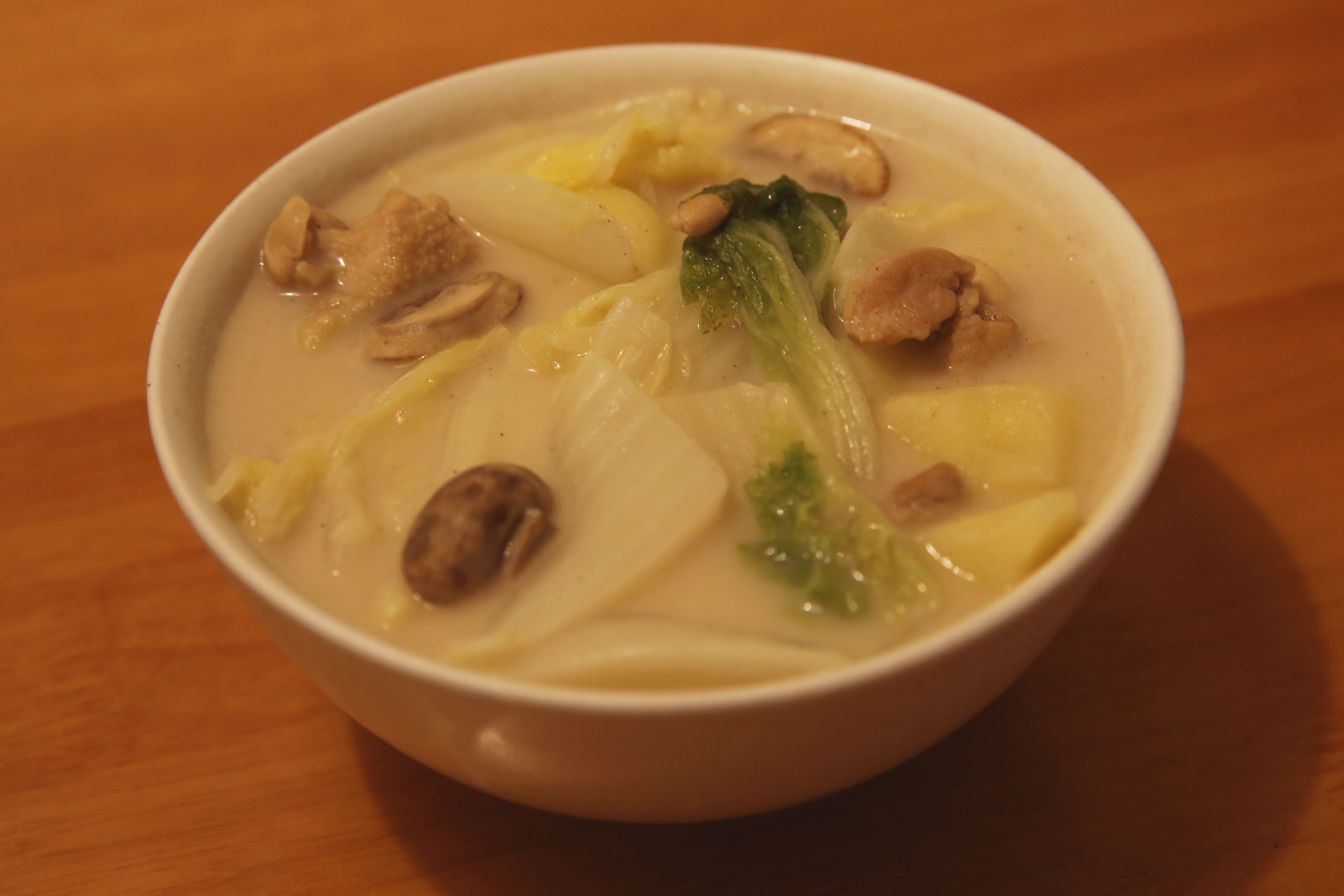 只放了土豆鸡块白菜和蘑菇。味道还不错!水放的比较多最后当汤喝了。
