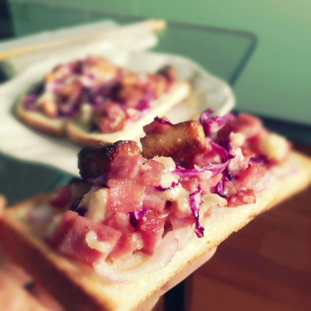 泥萌不要拦着我 真的太好吃了!!!!!放了火腿紫甘蓝洋葱奶酪块
