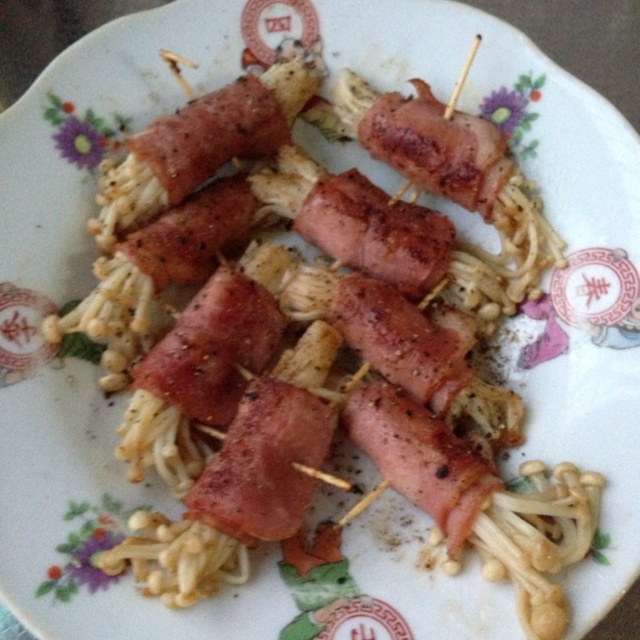 香煎培根金针菇卷