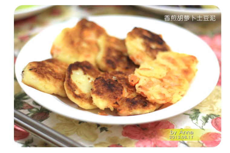 煎的有点焦了嗷嗷嗷。。纯粹是因为做香煎土豆泥茄盒多出来的土豆泥,于是做了几个小煎饼。加了低筋面粉和胡萝卜粒而已,不过很好吃!!
