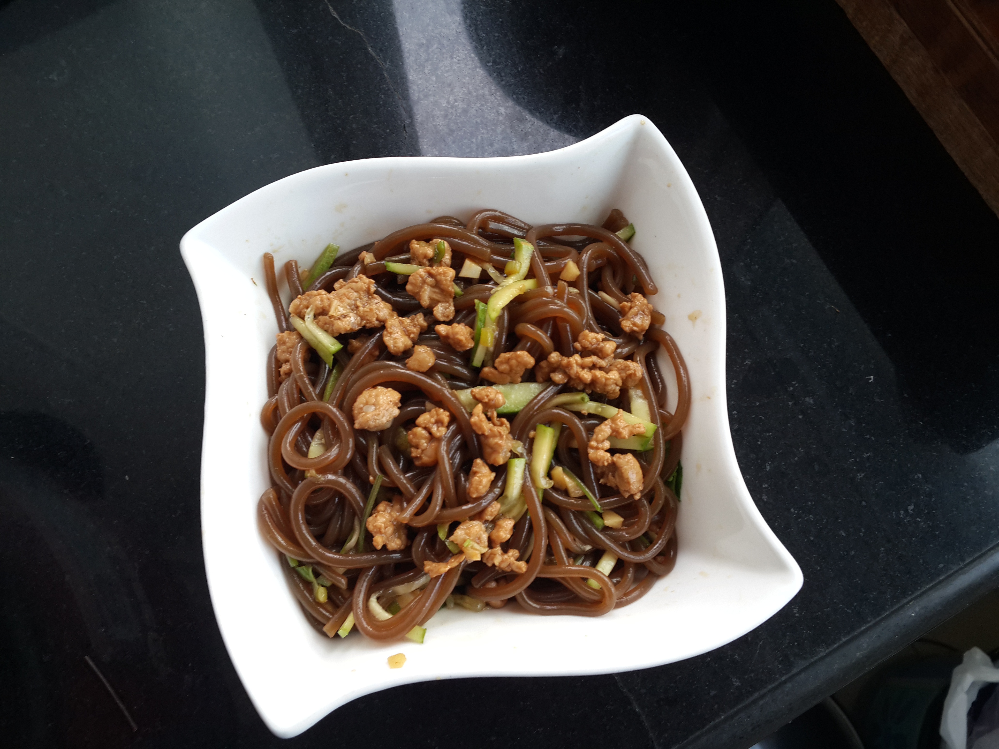 很喜欢这菜的味道,因不能吃辣的,只好忍痛割爱。我改良了一下,将肉末跟葱蒜用油炒熟后跟其他调料一起拌着吃。也不错!