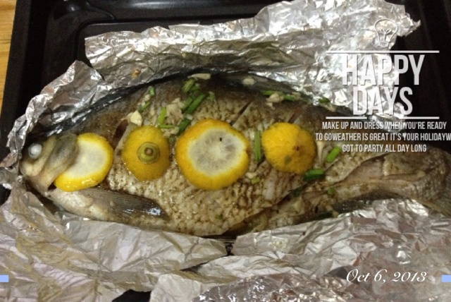 鳊鱼,放了点披萨页和罗勒页,味道也不错^•^