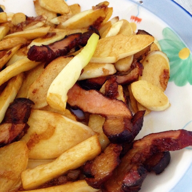 腊肉炒茭白,辣椒用光了,但是不加辣反倒吃出腊肉的香和茭白的嫩~
