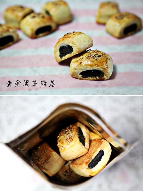 中秋做月饼还有黑芝麻馅剩下,再不解决就坏掉了,所以就做了这个哈!和我想像的味道不一样,超级酥!!!