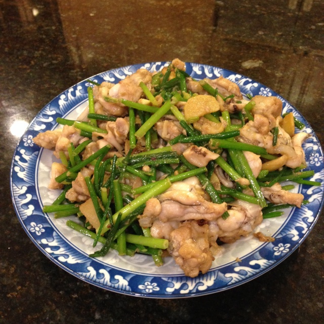 肉丝换成田鸡,韭菜花炒田鸡(巴掌大的牛蛙三只)。