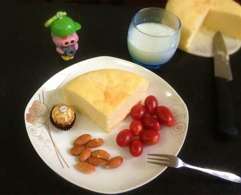 无油酸奶蛋糕,吃多多也不会胖\(^o^)/~,圣女果,杏仁,巧克力,牛奶,yummy~~~