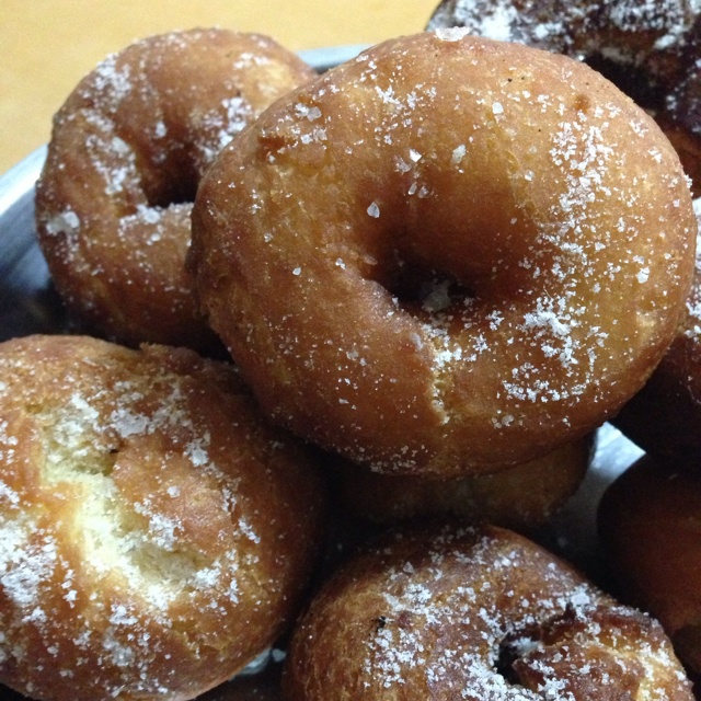半夜搞个donuts,蛋糕版有几个发呆炸糊了!油温还是低热开炸上浮为准!我的厨子爷爷说得。