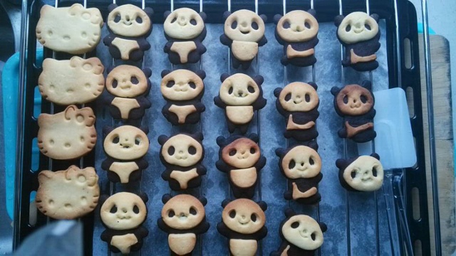 买了烤箱的第一次烘焙就折腾了这熊猫,太花时间了,没经验老是托不了模,甚至还出现了几只煤矿工作的熊猫