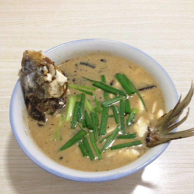 碗太深,鱼和豆腐都沉到底看不见了,汤不够白,老公说味道可以,鼓励下,呵呵
