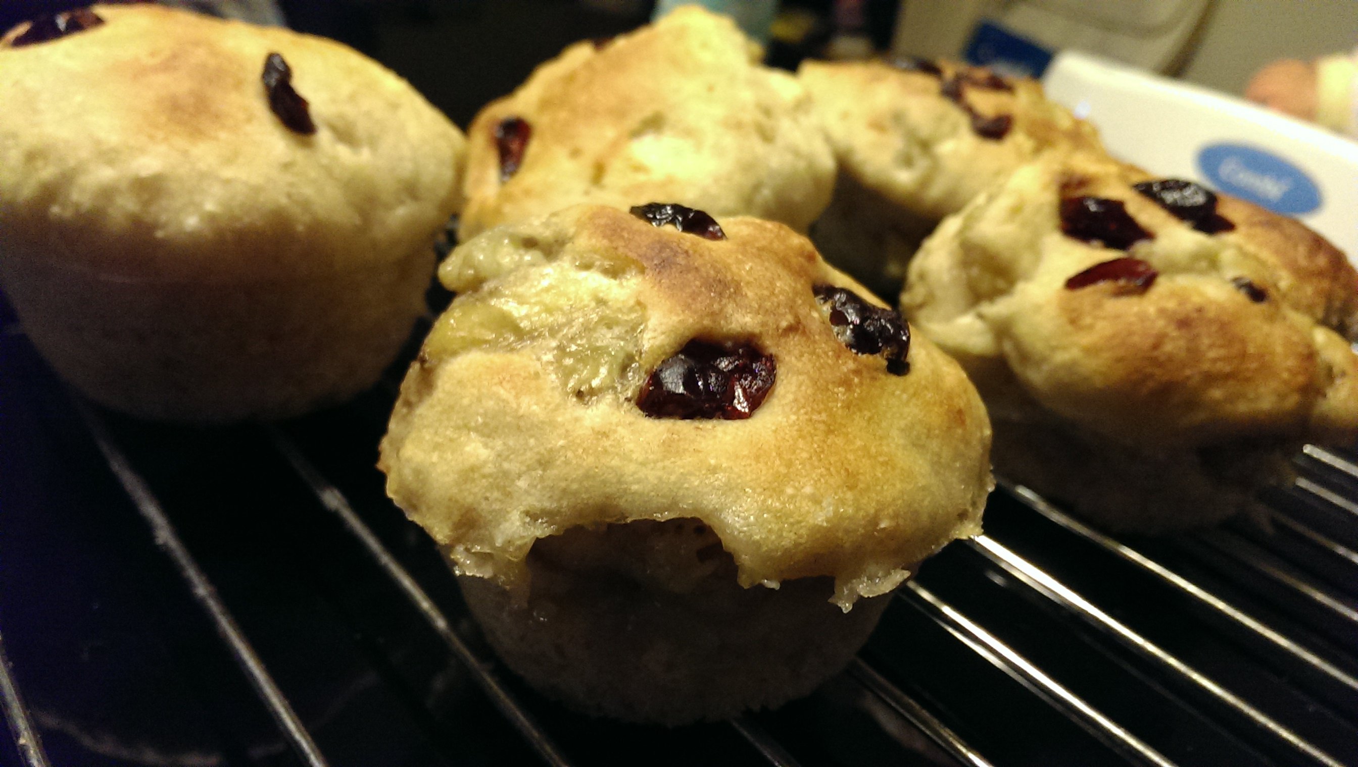 用发酵面团做的香蕉蔓越梅马芬。
