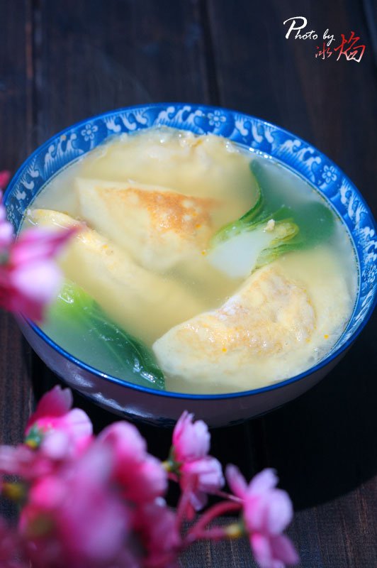 只要5分钟,一碗简单又超级好吃的【油菜蛋饺汤】就完成了,拿来做宵夜再合适不过得了。