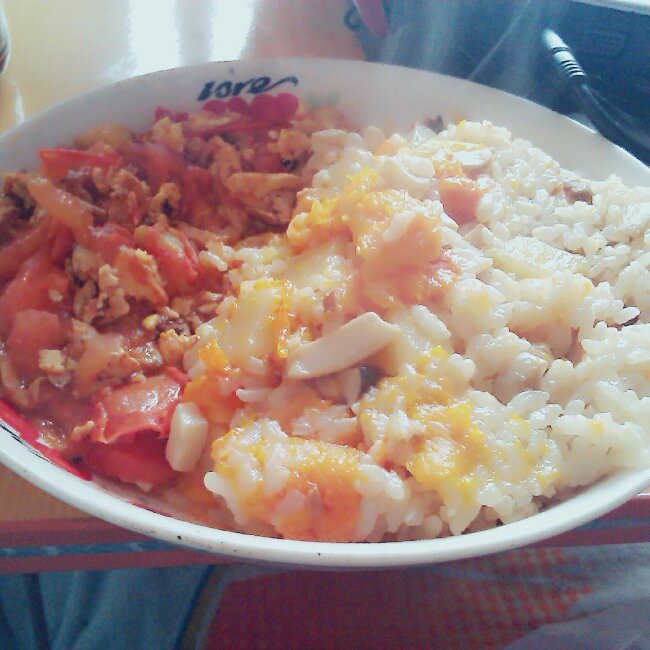 西红柿炒鸡蛋盖南瓜焖土豆炖蘑菇焖饭_(:з」∠)_