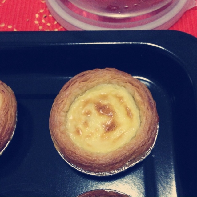 味道美呆了!烤箱第一次用还不太顺手,边边有一点焦…原来蛋挞这么简单!当然蛋挞皮是买好的嘿嘿^_^