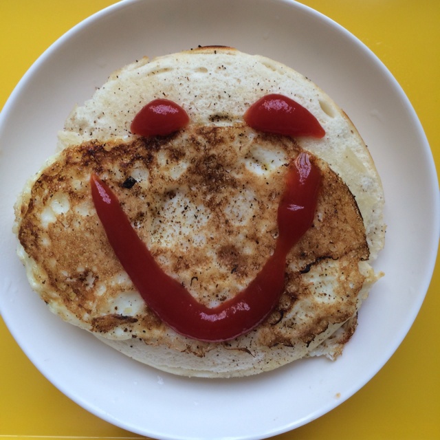 椒盐馒头煎鸡蛋 番茄酱太丑…一开始没想着要挤笑脸