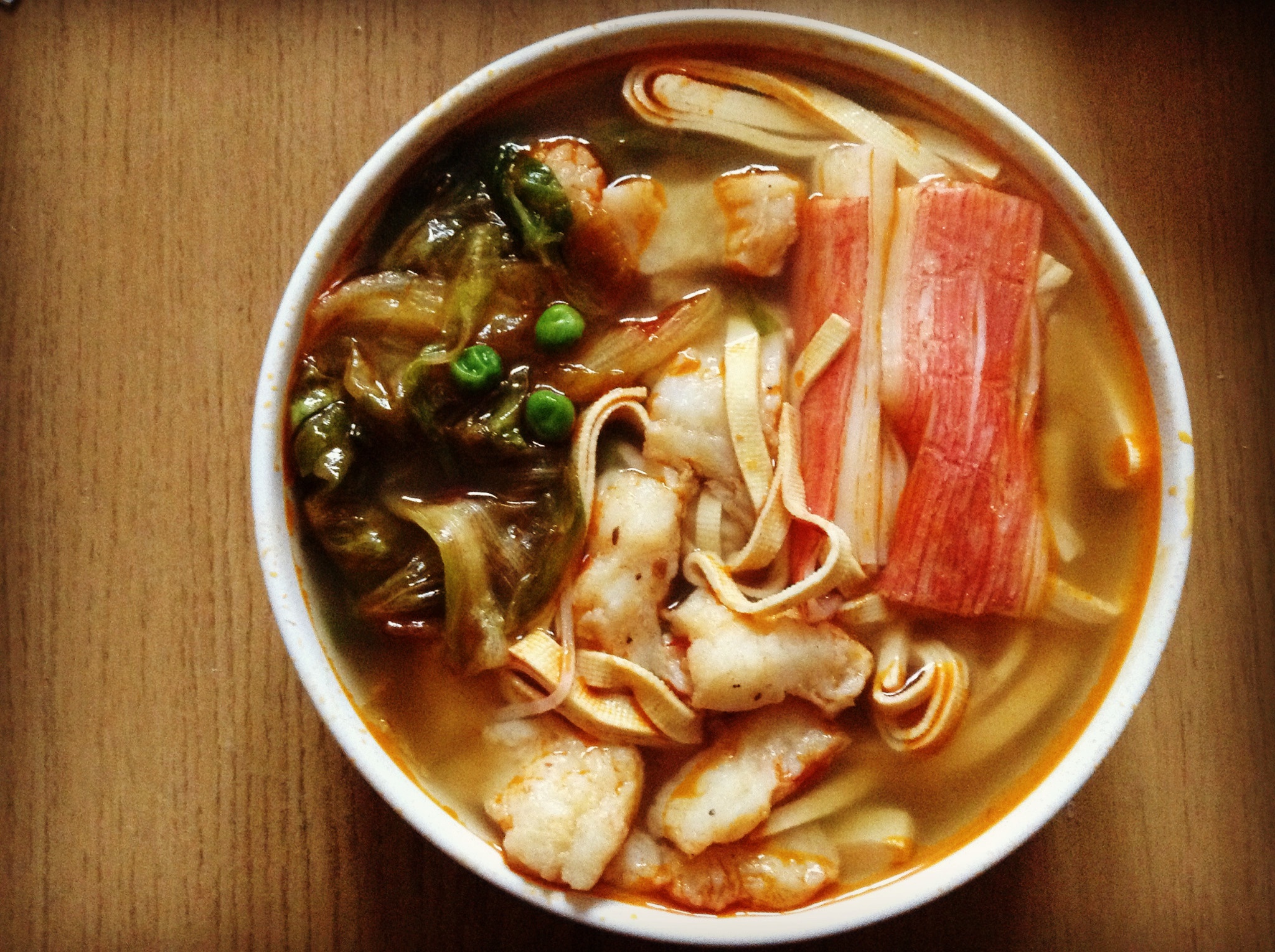 0312 晚饭自制麻辣烫 豆腐皮蟹棒一小块鱼青豆生菜 好满足!