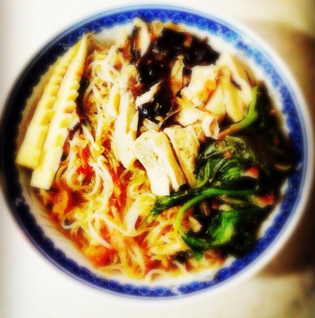用的绿豆粉,加了笋子、冻豆腐、菠菜、菇子、豆芽,很喜欢,已经是第二顿做晚餐了