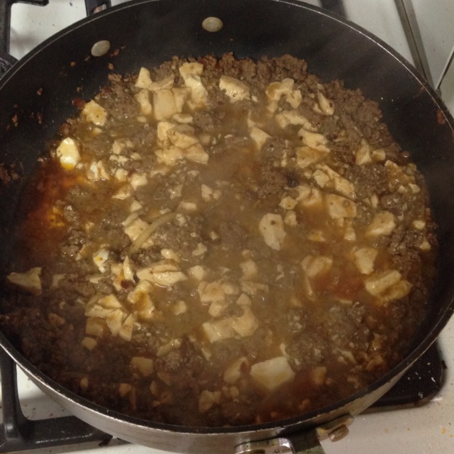 麻婆豆腐,还没做完的时候照的