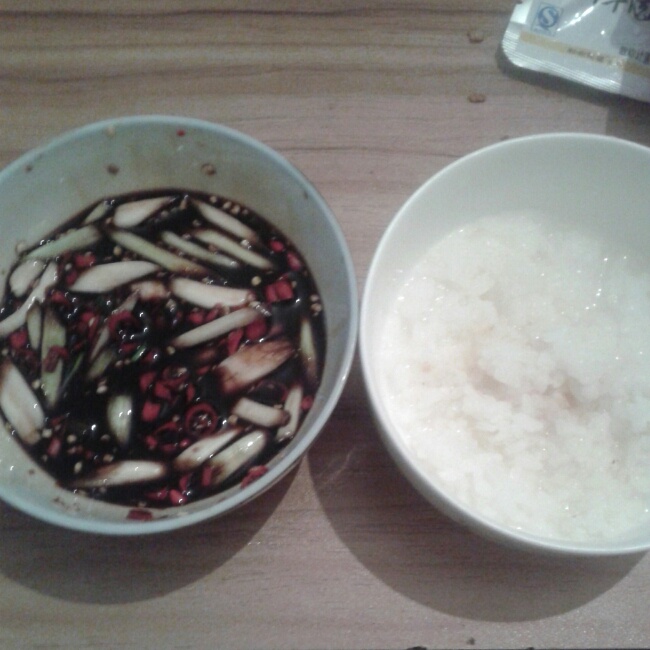 白稀饭配秘制小米辣,辣得好过瘾