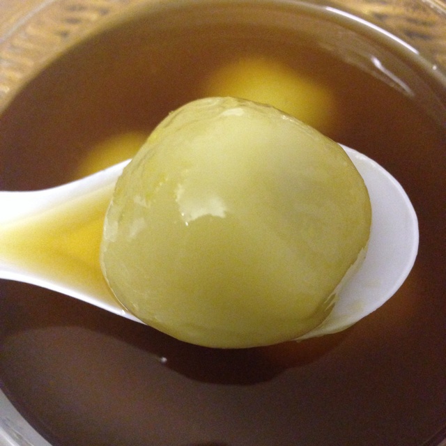 姜糖水汤圆,辛辣的姜味和红糖的甜香混合起来非常和谐,汤圆软糯馅儿香滑,忍不住啊食指大动。
