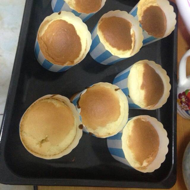 跟大家一样,烤出来之后有塌陷的现象,放了50g的糖,感觉甜度略差了一点儿。按配方做了八个,感觉还可以,挺好吃的!