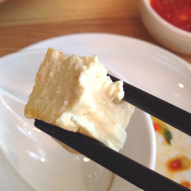 Effy歪歪小盆友 做过 午餐•2014年5月3日 #午餐•2014年5月3日#第一次去吃的时候卖完了的石磨豆腐 这个见仁见智 我爸觉得不好吃我就觉得不错 不是内酯豆腐那种滑溜溜的口感 而是比较绵密朴实的那种 2014-05-03