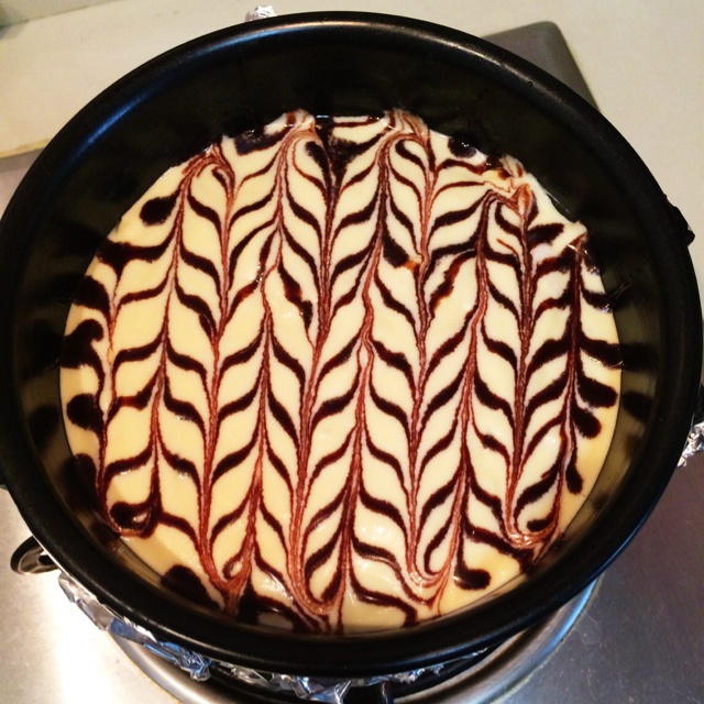 大理石纹芝士蛋糕,第一次做,拉的粗了点,不过味道应该不错吧!