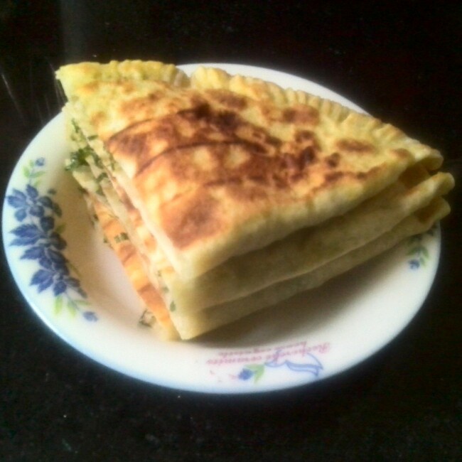 用细叶韭菜烙的菜盒,下午给同事带了点~