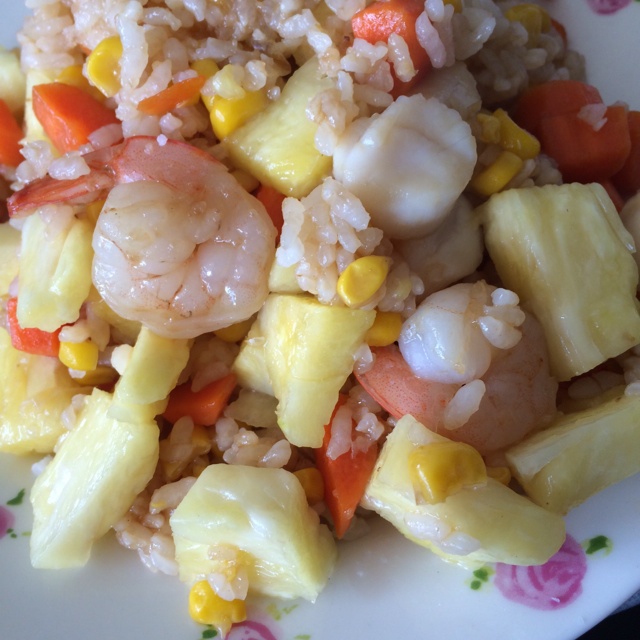 菜小晴 做过 午餐•2014年5月18日 #午餐•2014年5月18日#菠萝炒饭,第一次尝试水果入菜,放了胡萝卜玉米粒虾仁扇贝,酸酸甜甜又很仙,忙完毕业还要复习考试,村里的人越来越少,以后独食的日子越来越多,恐怕是这辈子一个人吃饭破纪录的长时间吧 2014-05-19