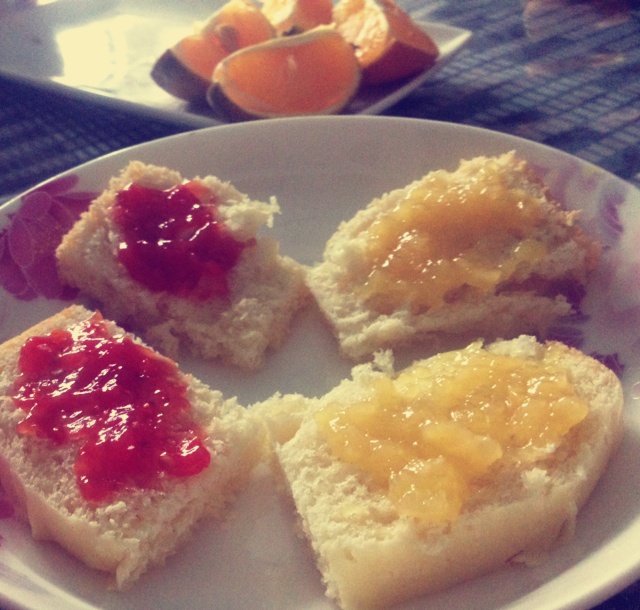 自制吐司+自制凤梨酱+自制番茄酱,给自己赞一个,呵呵
