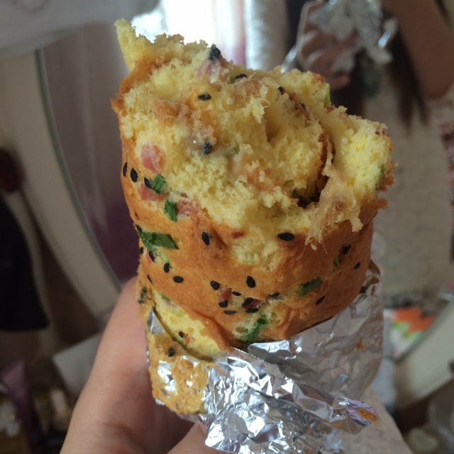 昨天做的肉松卷 来一口 啃爹今天停水 家里仅有的一口水刷牙洗脸 现在想洗手都不行