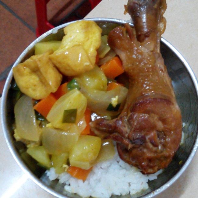 传说中的咖喱鸡腿饭,哈哈,还是喜欢来点肉肉吖!!