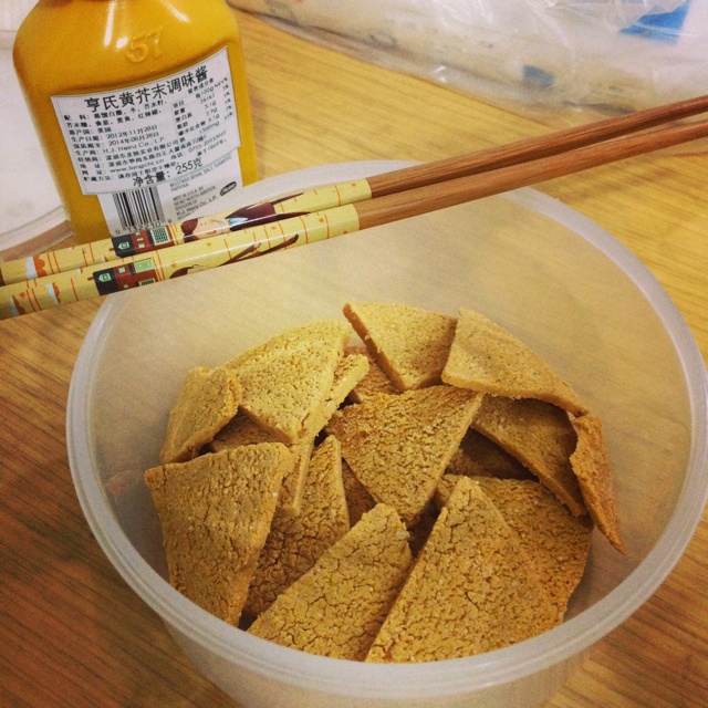 放了一瓶盖的橄榄油,加了一勺盐。170度15分钟烤箱烤的。用的玉米面太粗了,口感贼淳朴。。。加了扁豆面,烤的时候好香