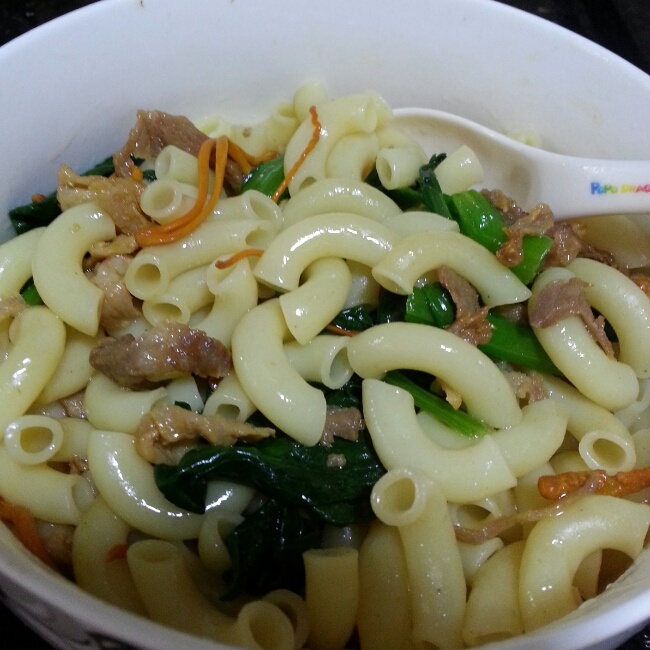 虫草花瘦肉菜心通粉,小宝的早餐