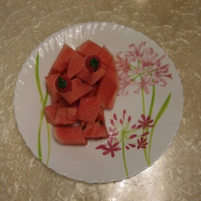 亲戚卖水果,送了几个大西瓜,真甜