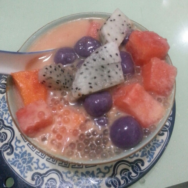 紫薯水果西米露 。。。。元气满满。大家早安!