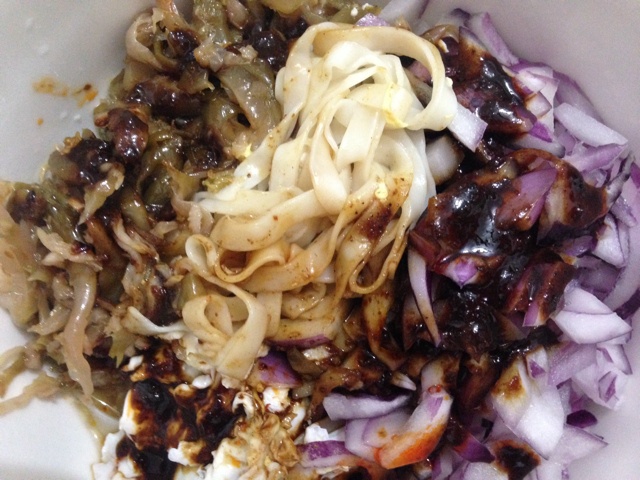 酸菜加辣酱,很随意的拌面,哈哈