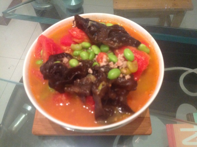 肉末毛豆烧蕃茄,这次加了一点黑朩耳,营养全都有了