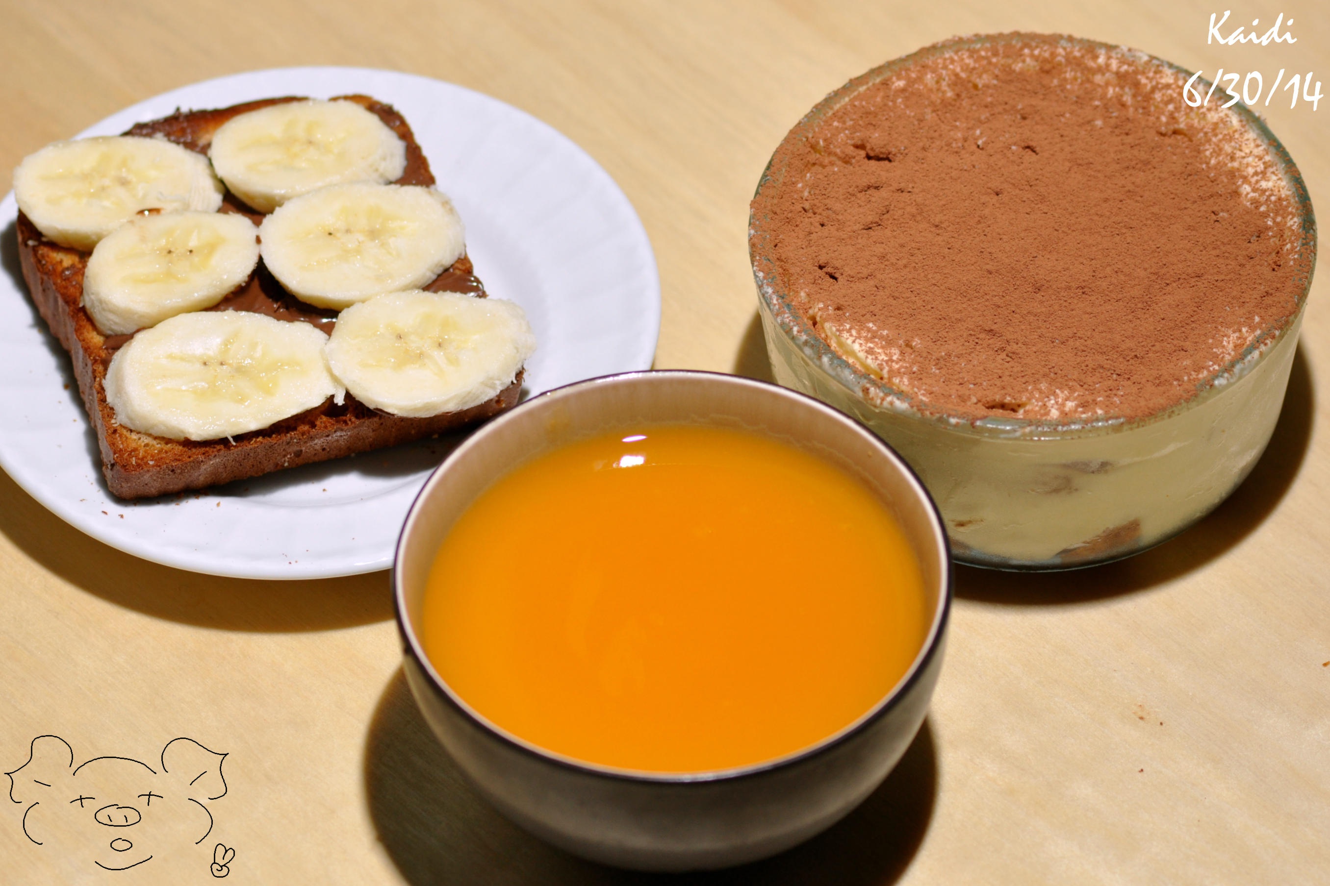 南瓜糯米糊+提拉米苏+吐司抹巧克力酱加香蕉+画面外的桃子