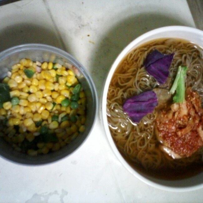 突突老爸 做过 晚餐•2014年7月3日 #晚餐•2014年7月3日#有发剩菜的吗?中午做的俩菜被突突吃的仅剩这点儿(左侧松仁玉米)……没办法,临时来碗冷面,算作剩下俩人的晚饭……向已经为人父为人母,或即将为人父为人母的朋友们致敬!别吝惜你们的双手,为自己点赞吧! 2014-07-03