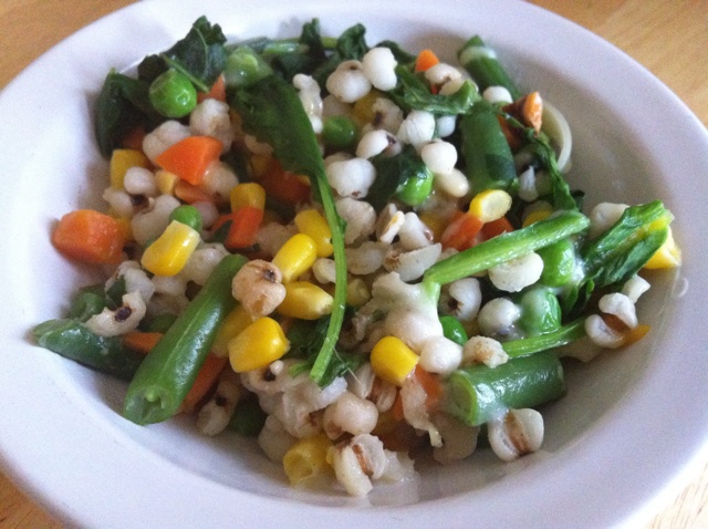 薏米炒杂蔬〜第一次把薏米炒着吃诶,凝结结的好喜欢!今天突然想起小时候吃的臭冬瓜和臭苋菜杆,回去要试着做一下!