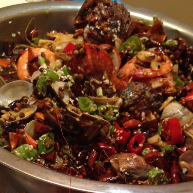 辣炒一大盆海鲜~作为北方的我什么都喜欢辣炒,吃不惯那种清淡
