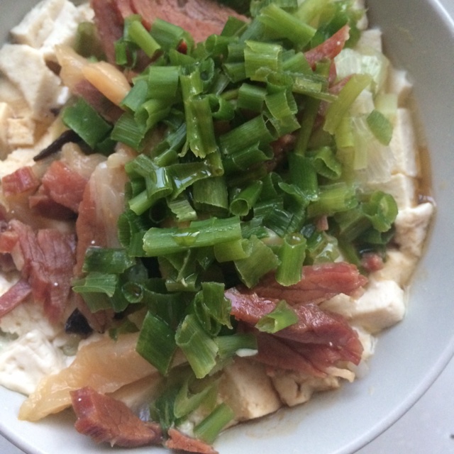 云腿榨菜碎小葱蒸豆腐