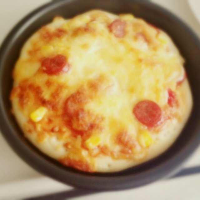 突然想到要做披萨、家里配料不足、就只有玉米和香肠~ 味道非常好呢~