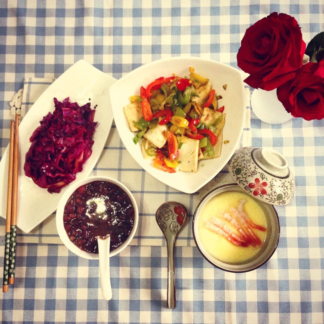 吃饭咯~又是一个人的晚餐~那也不影响晚餐滴心情~要营养搭配哟