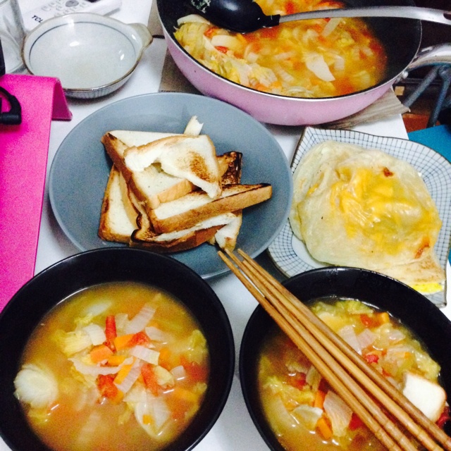 顾猫小里 做过 晚餐•2014年7月30日 因为前一晚晚餐没吃蔬菜,肠胃都不通畅。啊哈哈昨晚做的超大量无添加蔬菜汤,再烤了下吐司(边烤边吃掉好多)再消灭点印度飞饼。啊哈哈要还换租房啦今天希望顺顺利利! #晚餐•2014年7月30日# 2014-07-31