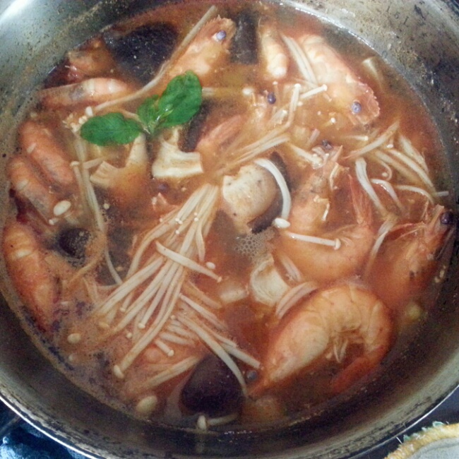 冬阴功汤,一大早的介么重口味到底好嘛?其实我觉得被我手碰过后这就是个虾汤