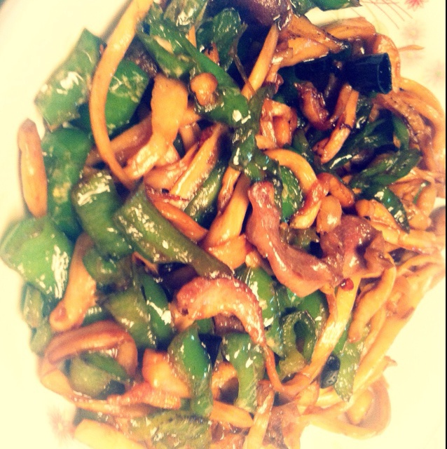 爆菌胗,其实就是二荆条爆炒手撕杏鲍菇和土鸡胗。